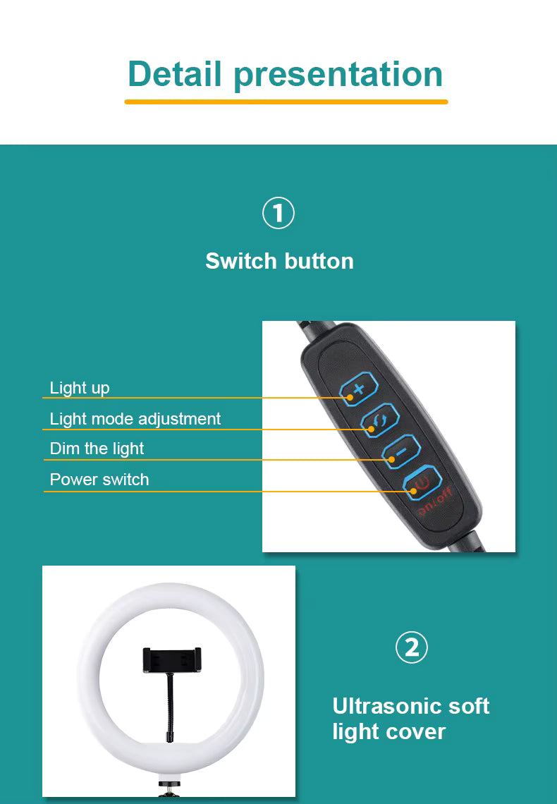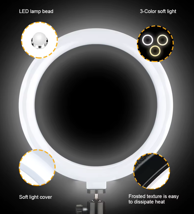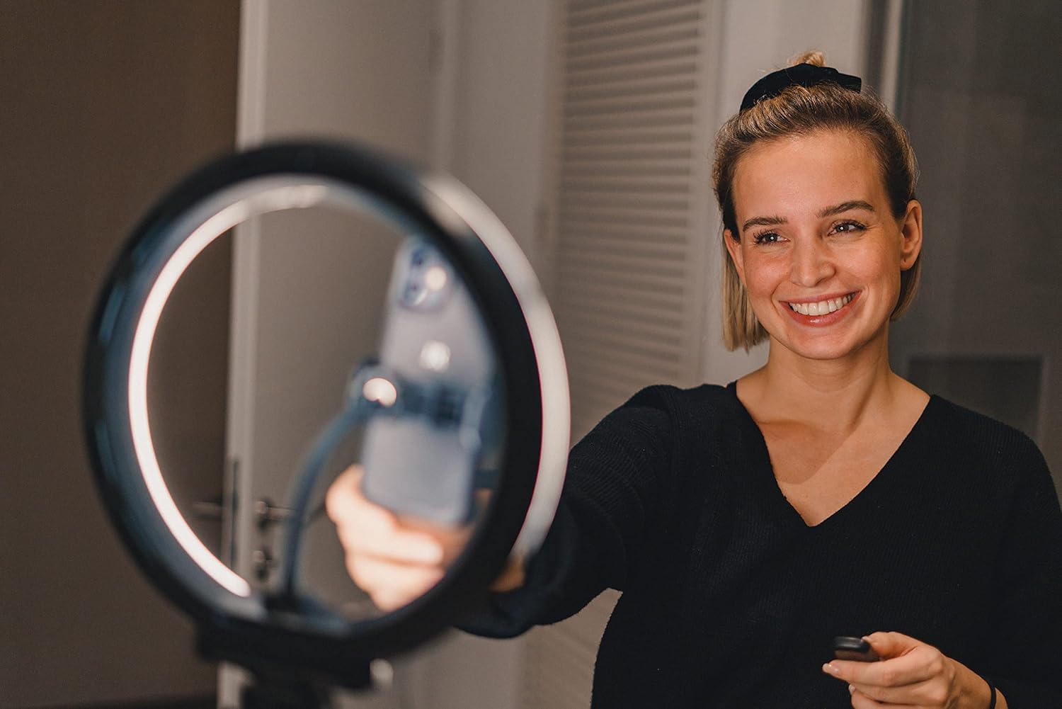• 💡 Fullkomin hringlýsing – Gefur húðinni náttúrulegan ljóma og dregur fram smáatriði í myndum og myndböndum.
