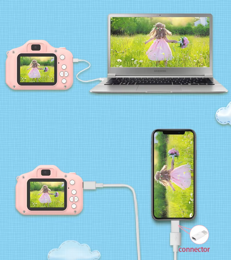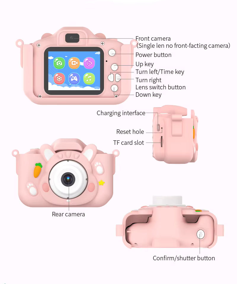 Þessi barnamyndavél er hönnuð sérstaklega fyrir börn á aldrinum 3–12 ára og sameinar skemmtun, sköpun og lærdóm á einfaldan og öruggan hátt.