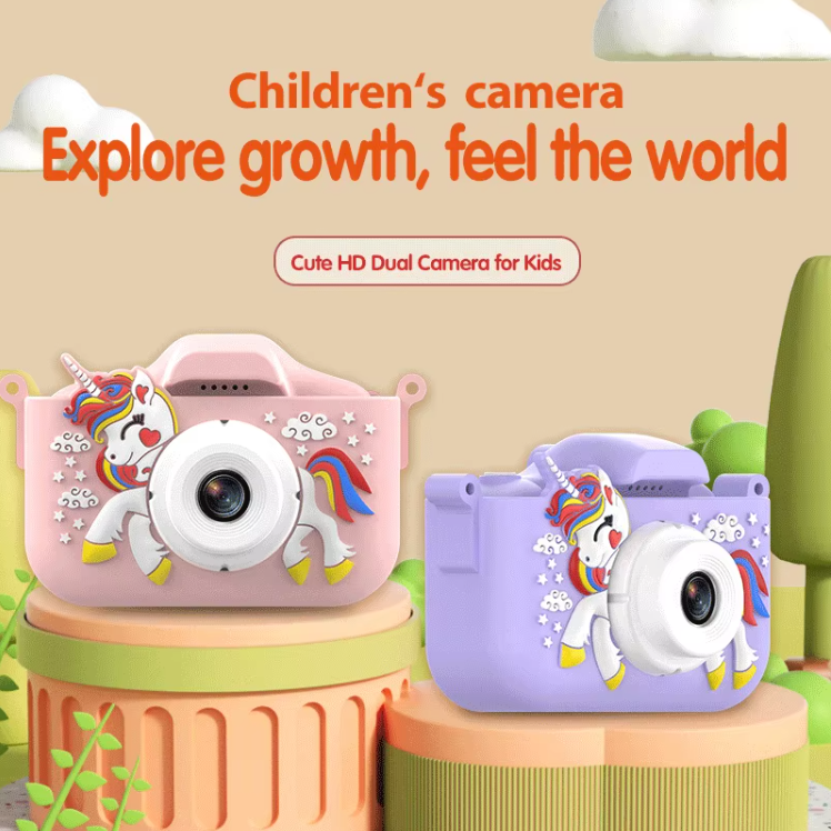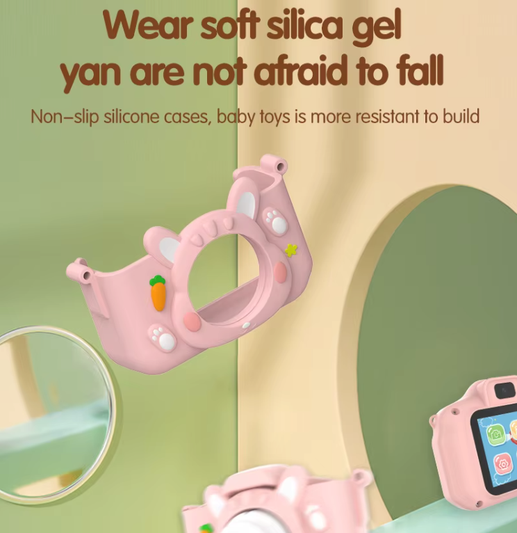 Hönnuð með endingargóðu efni, mjúkum sílikon brúnum og fallegum litum. Þessi myndavél er bæði örugg og sniðug til að örva sköpunargáfu barna.