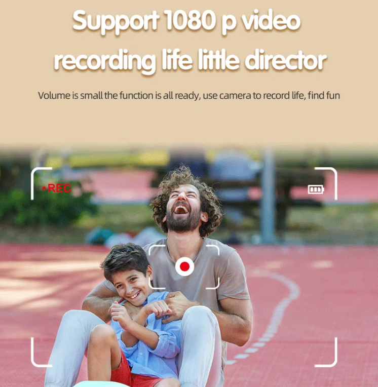 Myndavélin tekur 1080P HD myndbönd og skýrar ljósmyndir, með auðveldum tökkum sem henta litlum fingrum. Hún er fullkomin í ferðalagið, afmælið eða jólapakkann og heldur börnunum frá símanum á jákvæðan hátt!