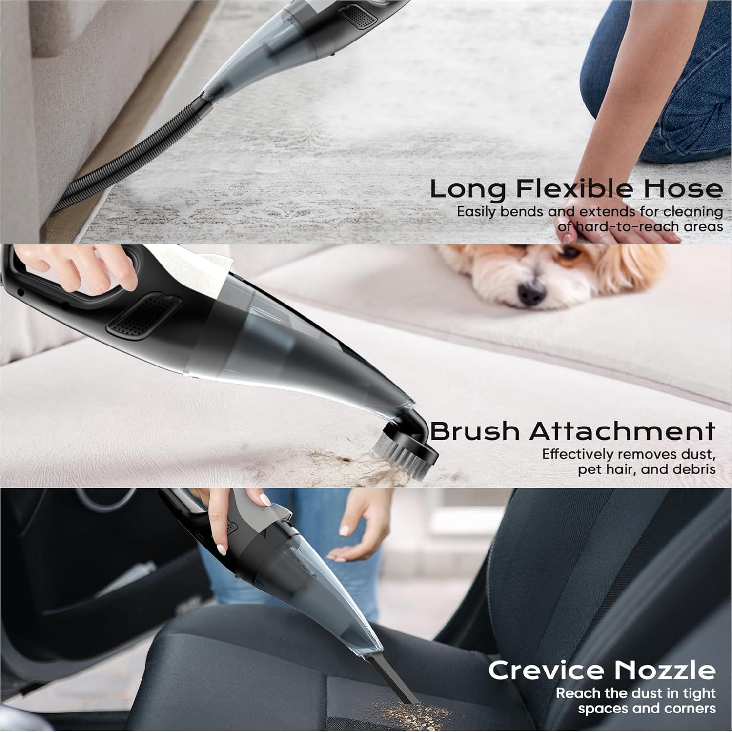 Þessi ryksuga kemur með 5 mismunandi stútum sem gera þér kleift að komast í öll skúmaskot, LED ljósi sem lýsir upp dimma staði og léttum, þráðlausum hönnun sem gerir hana fullkomna í bílinn, heima eða á ferðinni. Stílhrein svört & hvít hönnun sem sameinar nytsamleika og útlit.