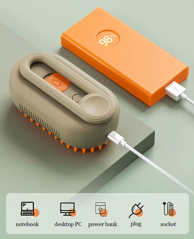 Með mildri gufu hjálpar hann til við að mýkja feldinn, losa laus hár og hnúta, og draga úr stöðurafmagni – á meðan hann veitir róandi nudd sem dýrið elskar.