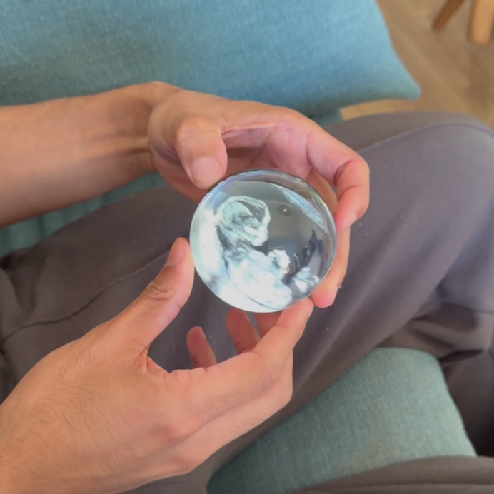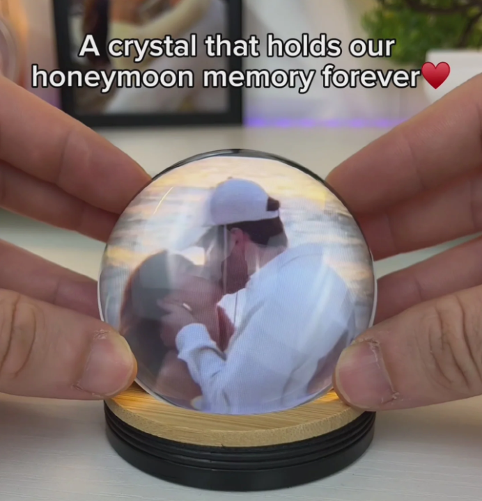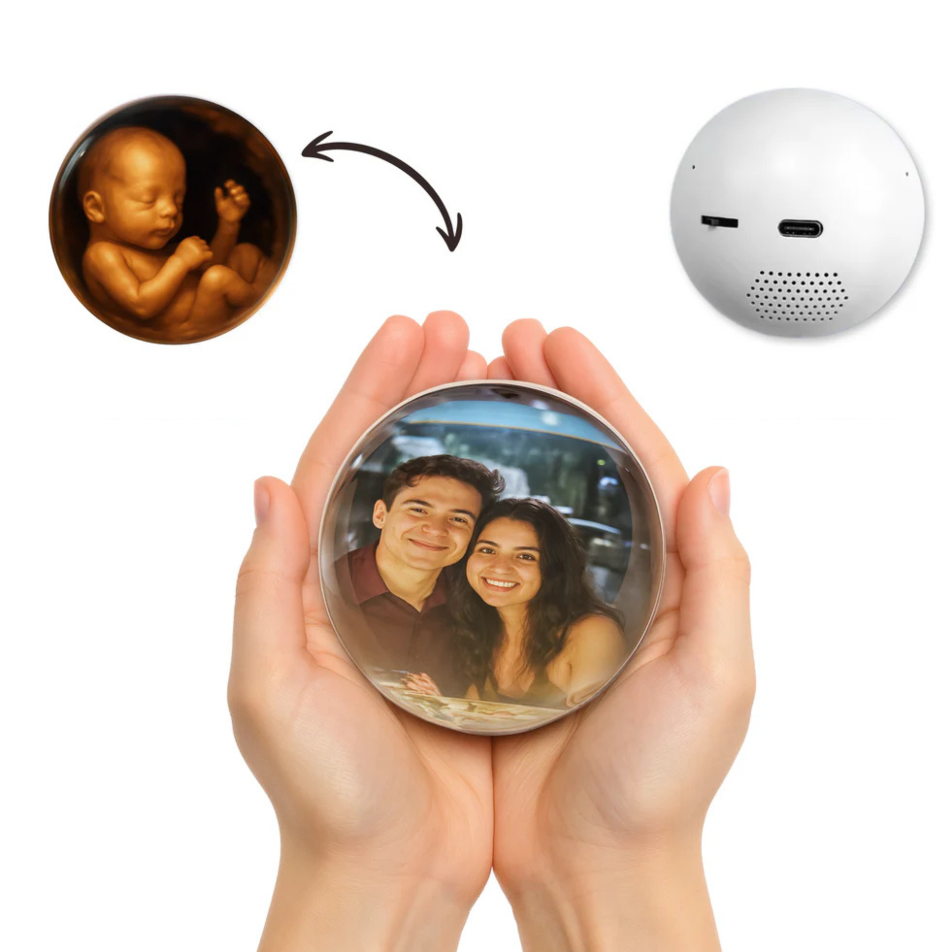 Minningarkúlan er óvenjulegt og töfrandi gjafartæki sem umbreytir myndböndum og ljósmyndum að dýrmætum augnablikum.