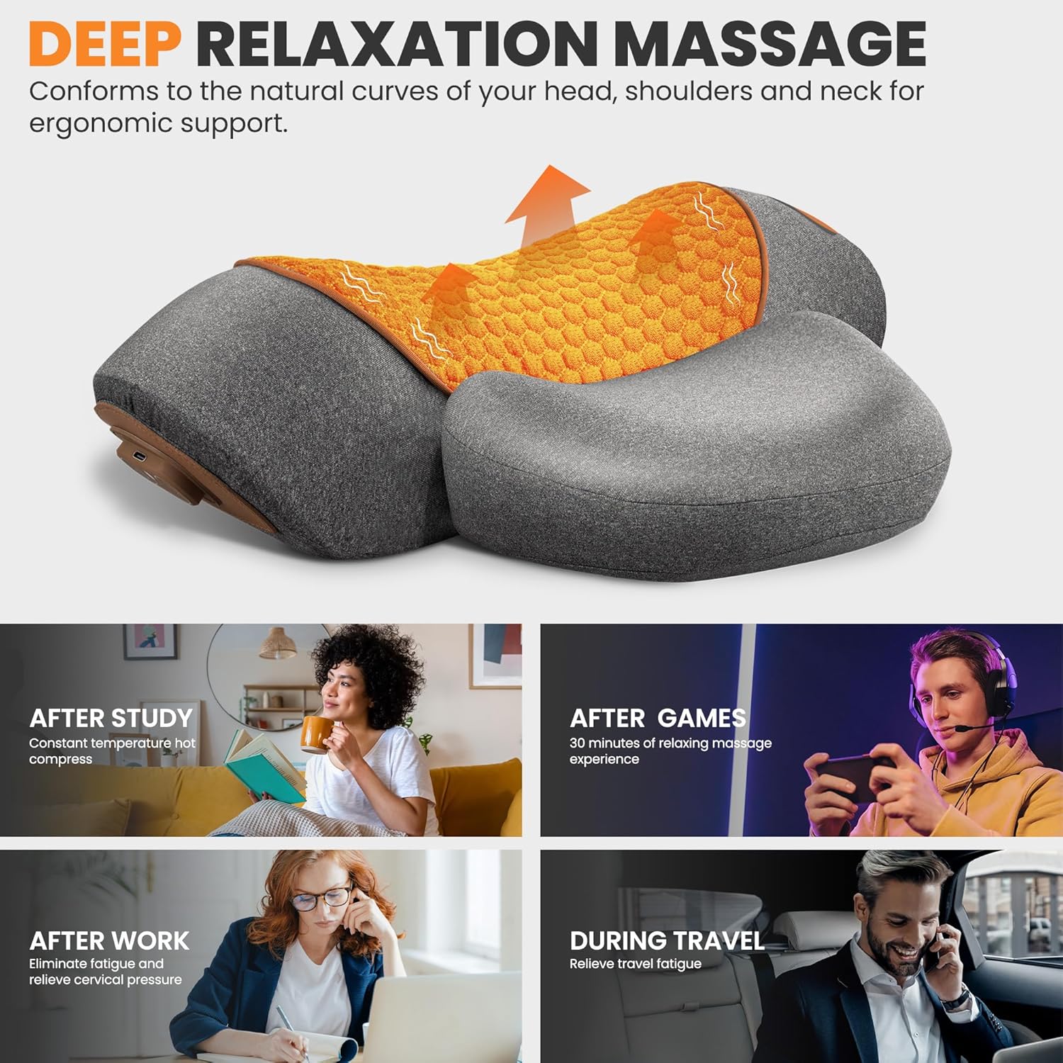 Þessi 3-í-1 hálsnuddpúði sameinar djúpverkjanudd, hita og teygju til að lina spennu, bæta líkamsstöðu og gefa hálsinum þá umhyggju sem hann á skilið.
