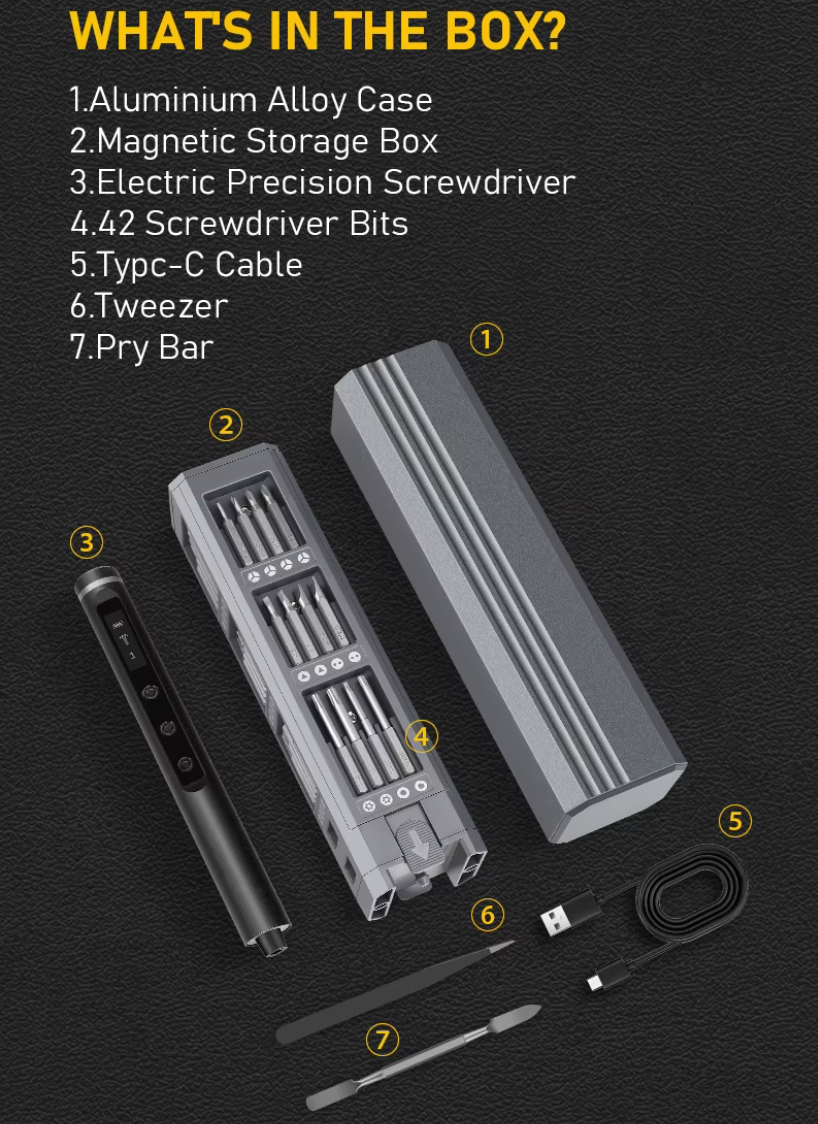 Hvort sem þú ert að gera við síma, tölvur, leikjatæki, gleraugu eða klukkur, þá sér þetta verkfæri um vinnuna af nákvæmni og léttleika.