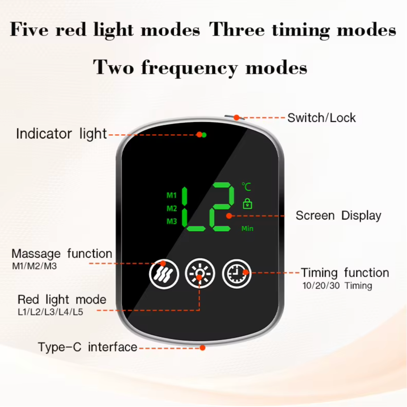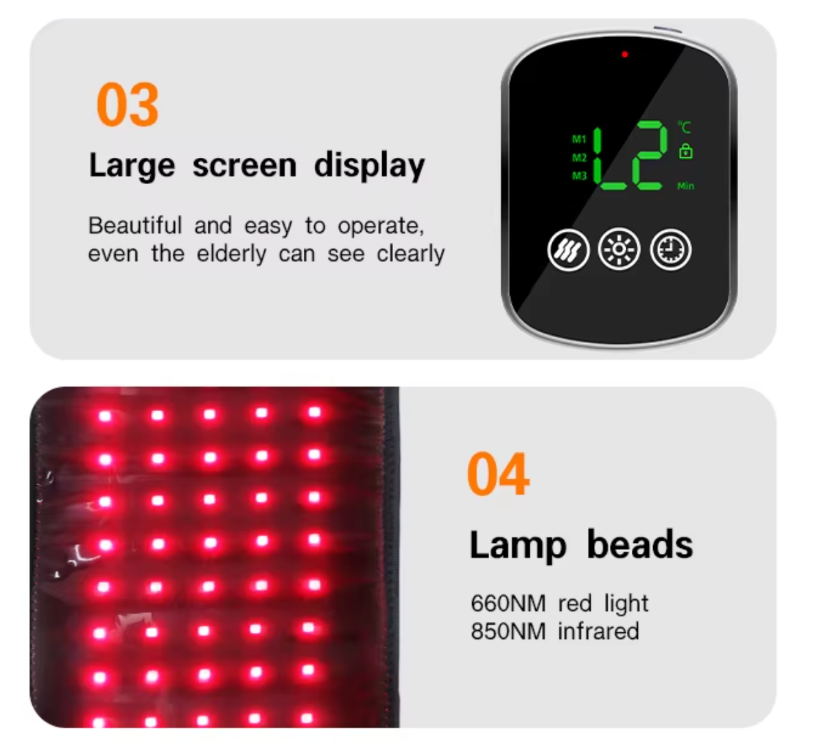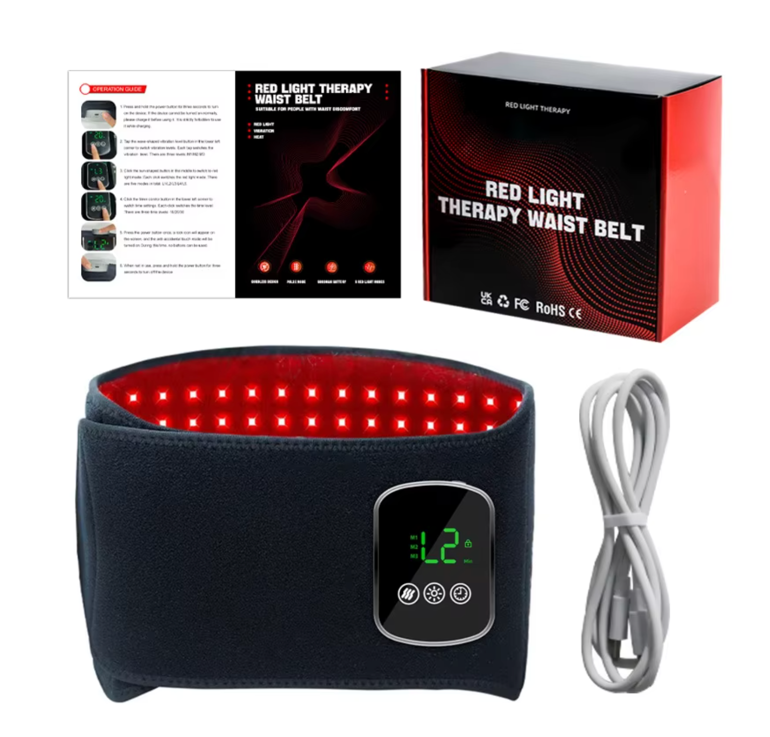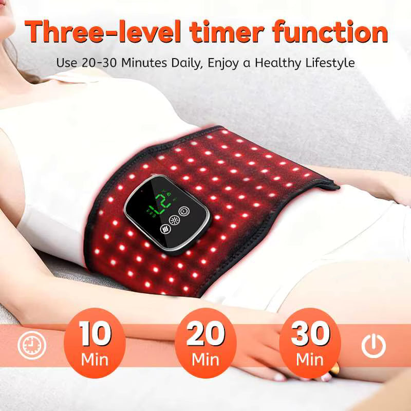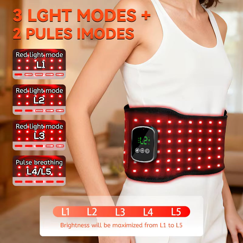 Hitabelti með rauðu ljósi fyrir bak og kvið sameinar rauða ljósameðferð, innrautt ljós og hita til að veita þægilega og slakandi meðferð fyrir bak, kvið og mjóbak.