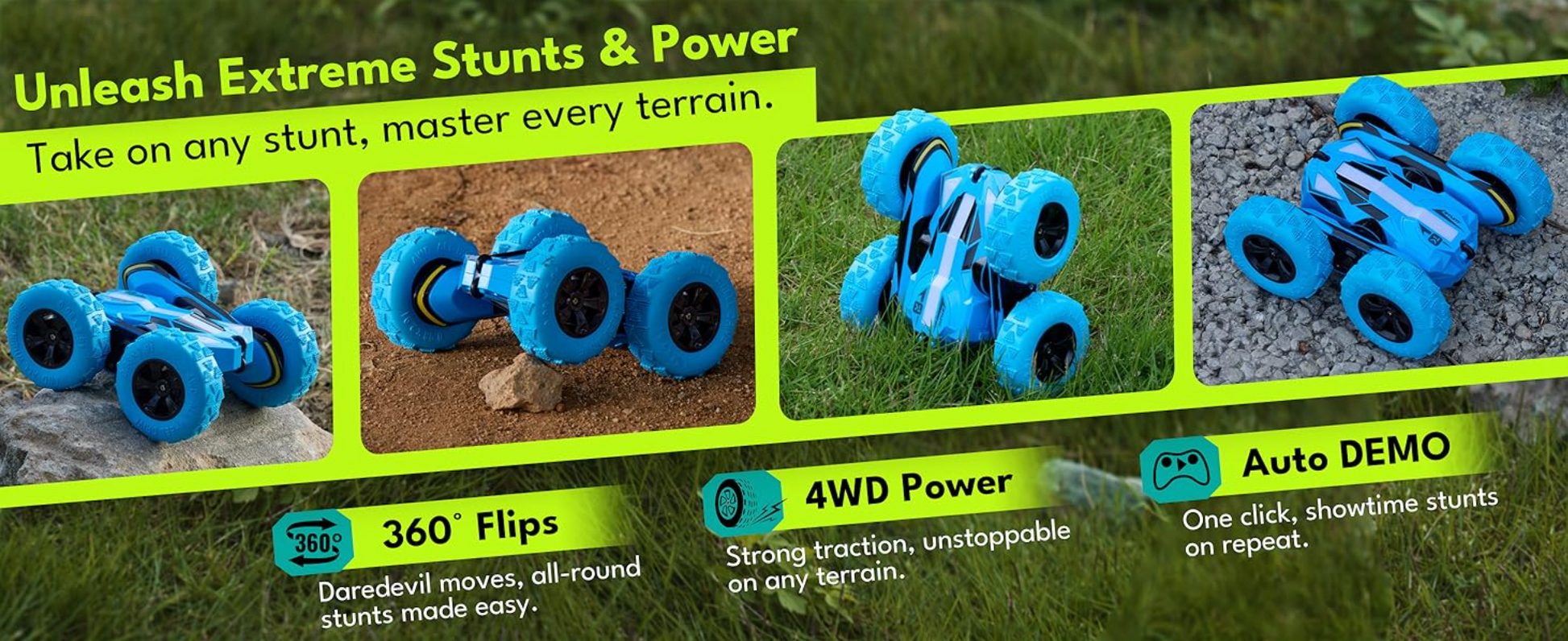 Fjarstýrði stunt bíllinn er fullkominn fyrir krakka á aldrinum 3–15 ára sem vilja upplifa alvöru hasar.