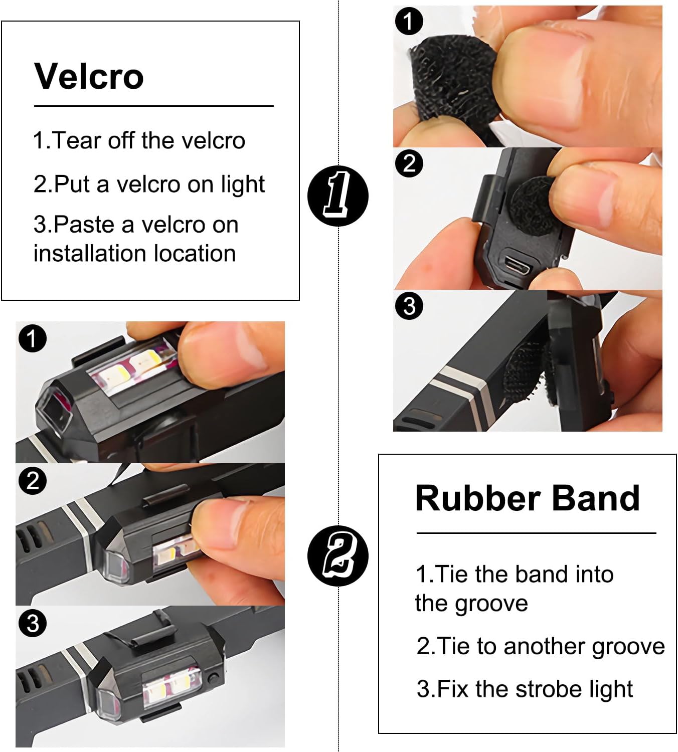 Þessi 6 stykki af þráðlausum LED blikkljósum eru hönnuð til að tryggja öryggi, aðvörun og sýnileika hvort sem þú ert á bíl, mótorhjóli, hjóli, dróna eða jafnvel í útilegu.