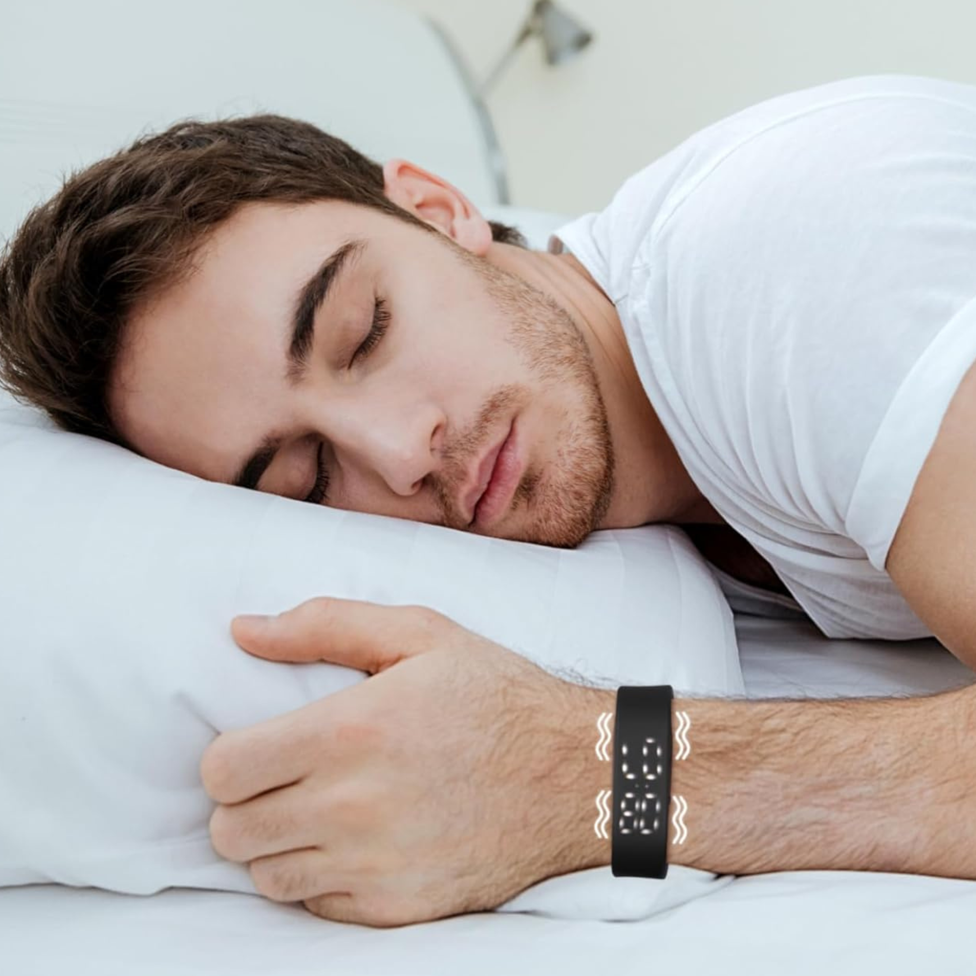 • Mjúkt, stillanlegt sílikonarmband – Létt og þægilegt allan daginn.